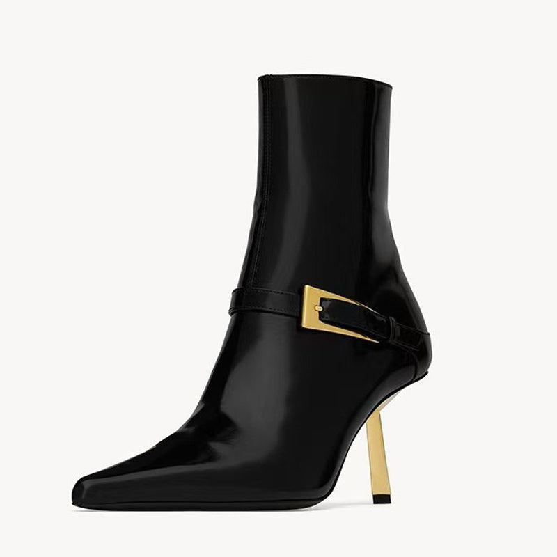 Elevate your look with these sexy women’s ankle boots, featuring a sleek pointed toe, slim stiletto heel, and eye-catching metal buckle details. Perfect for parties, evenings out, or special occasions, these boots combine sophistication, glamour, and modern edgy style.