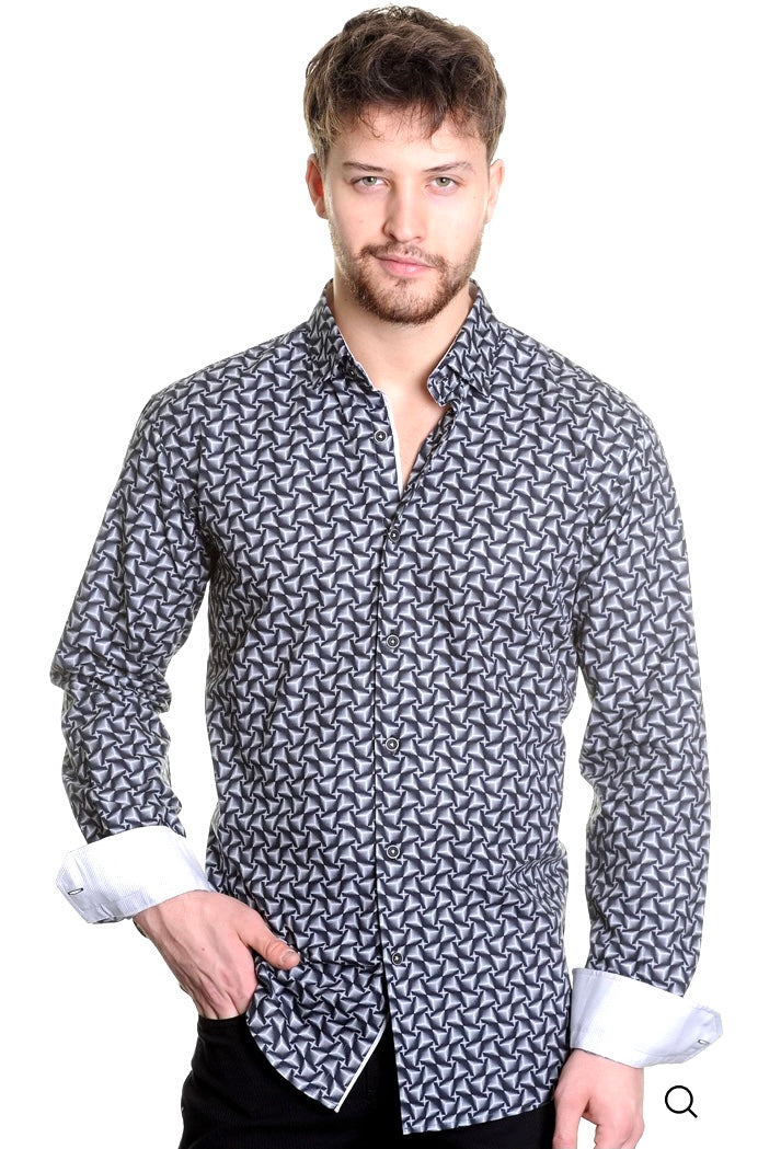 The sharp black and white contrast trim gives this shirt a refined edge, making it a must-have staple for any stylish gentleman. Whether paired with tailored trousers or denim, this premium long sleeve shirt for men ensures a polished, confident look every time.