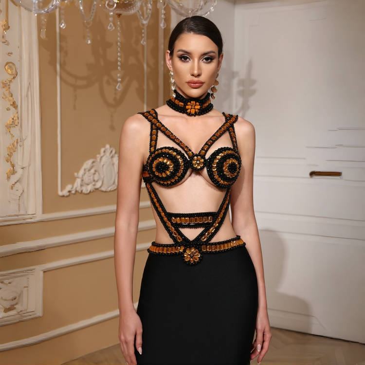 Make a statement in this Black Bandage Gown with Collar, featuring a figure-flattering bandage fit and a sophisticated collar detail. Designed to combine elegance with a touch of sexiness, this dress is perfect for evening parties, cocktail events, birthdays, and special occasions, offering a chic and modern silhouette for confident women.