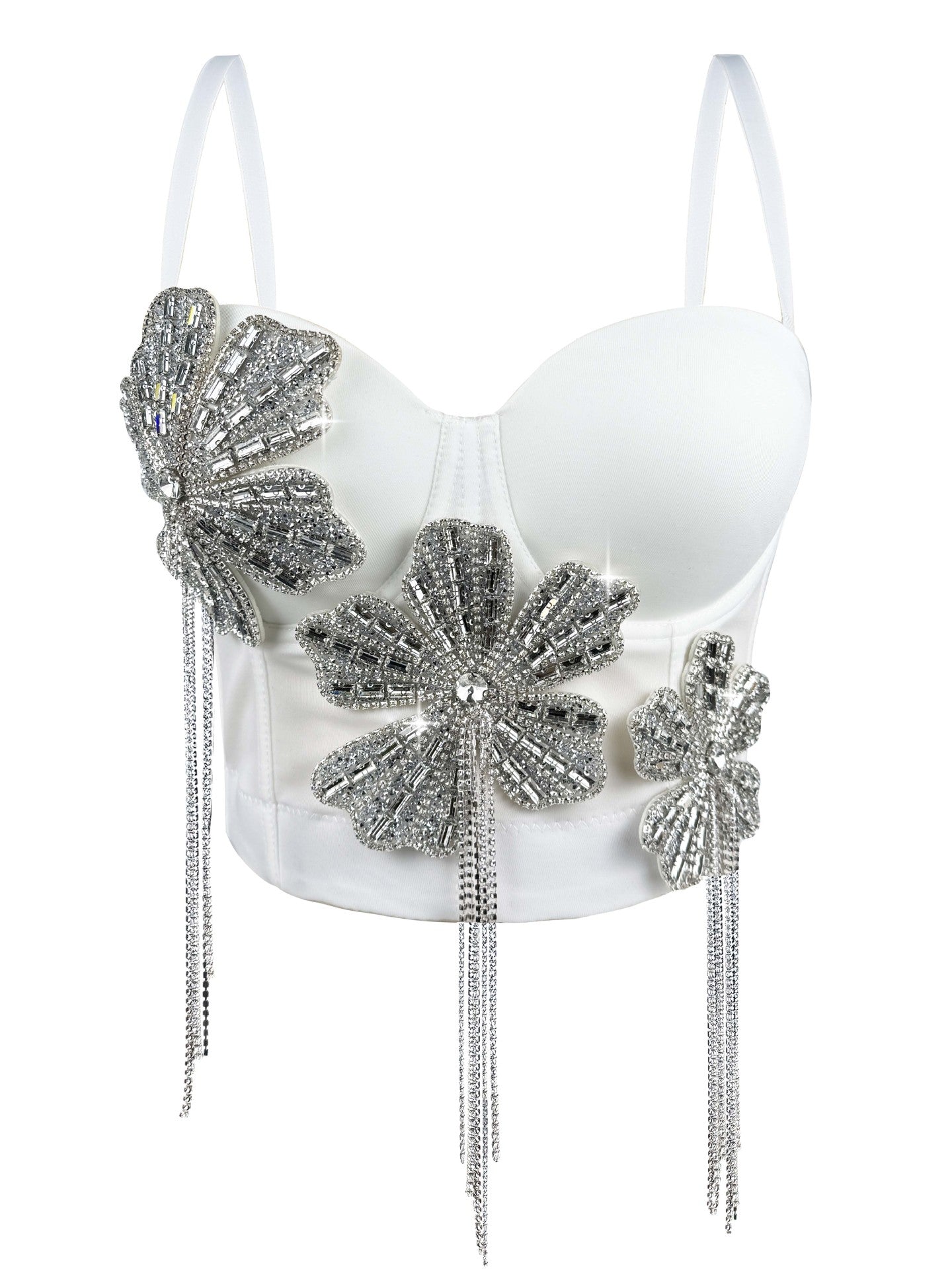 Turn up the allure with this semi-transparent sexy crop top, featuring floral tassel accents, a fishbone-inspired design, and a supportive gathering sling fit. Perfect for intimate occasions or stylish, bold layering looks.